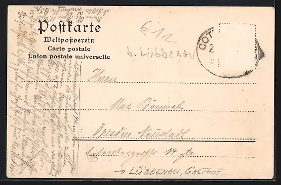 alte Ansichtskarte, gelaufen, Briefmarke entfernt, rückseitig Oberflächenschaden, guter Zustand