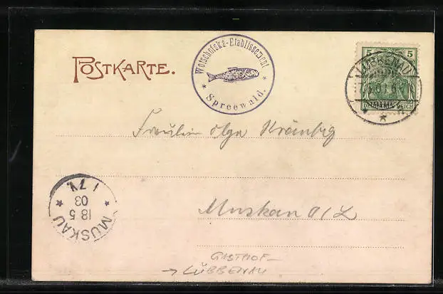 alte Ansichtskarte, gelaufen 1903, guter Zustand