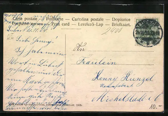 alte Ansichtskarte, gelaufen 1909, guter Zustand