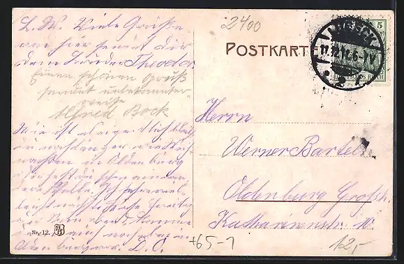 alte Ansichtskarte, gelaufen 1911, Eckknick re. oben, Stempelspur, guter Zustand