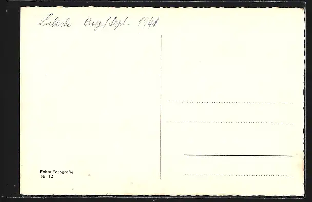 Personenbezogene Daten auf der Rückseite der Karte wurden durch blauen Textmarker unkenntlich gemacht. Die blauen Stellen sind auf die Vorderseite durchgeweicht und wirken sich negativ auf das Postkartenfoto aus