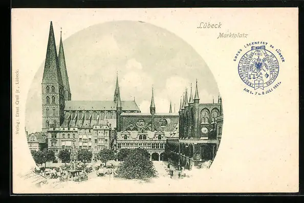 AK Lübeck, Blick auf den Marktplatz mit Kirche