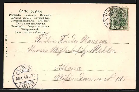alte Ansichtskarte, gelaufen 1905, guter Zustand