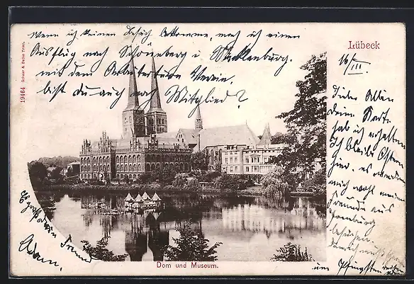 AK Lübeck, Blick vom Ufer auf Dom und Museum