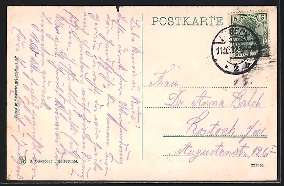 alte Ansichtskarte, gelaufen 1912, Stempelspur, Eckknicke re. unten und li. oben, guter Zustand