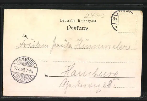 gelaufen 1899, Briefmarke entfernt, guter Zustand