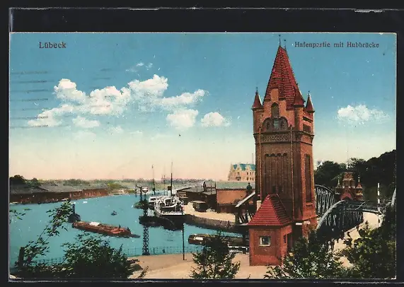 AK Lübeck, Hafenpartie mit Hubbrücke