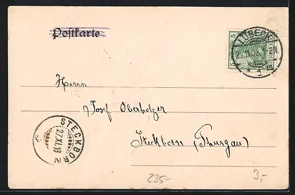 alte Ansichtskarte, gelaufen 1903, Eckknick li. unten, guter Zustand