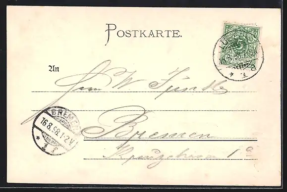 alte Ansichtskarte, gelaufen 1898, guter Zustand