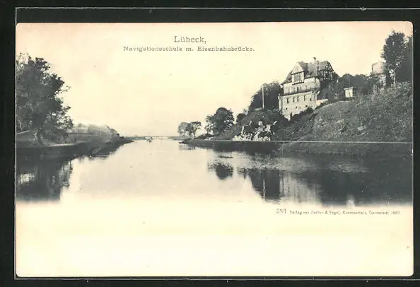 AK Lübeck, Navigationsschule m. Eisenbahnbrücke