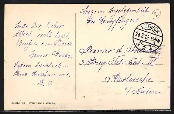 alte Ansichtskarte, gelaufen 1912, Stempelspur, guter Zustand