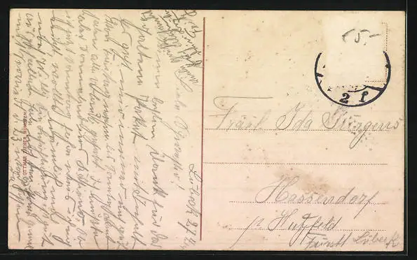 alte Ansichtskarte, gelaufen, Briefmarke entfernt, rückseitig Oberflächenschaden, guter Zustand