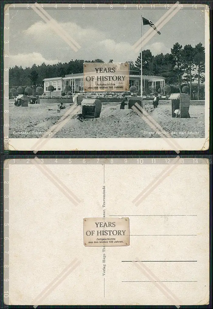 AK Lübeck Travemünde Strandpavillon Carl Schulz Terrasse Strand Strandkörbe 1939 M2024-06-09-026AK Lübeck Travemünde Strandpavillon Carl Schulz Terrasse Strand Strandkörbe 1939