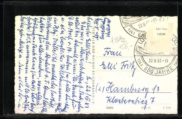 alte Ansichtskarte, gelaufen 1963, Briefmarke entfernt, guter Zustand