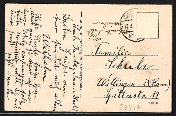 alte Ansichtskarte, gelaufen, Briefmarke entfernt, guter Zustand