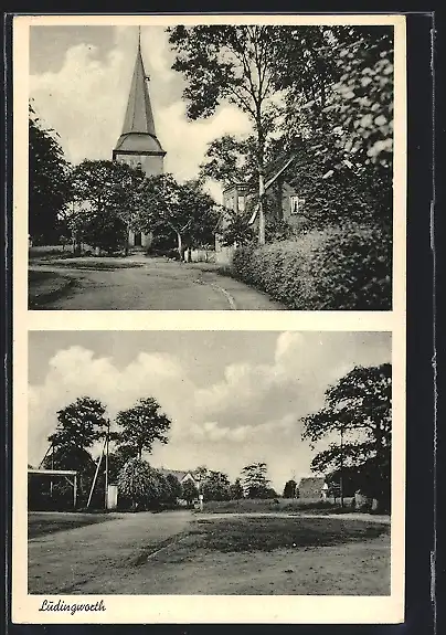 AK Lüdingworth, Blick zur Kirche, Strassenpartie