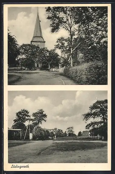 AK Lüdingworth, Weg zur Kirche, Ortsansicht