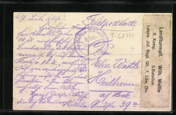 alte Ansichtskarte, gelaufen als Feldpost, guter Zustand