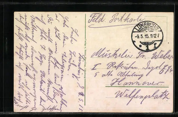 gelaufen als Feldpost 1915, guter Zustand
