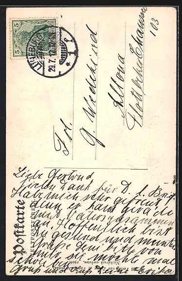 alte Ansichtskarte, gelaufen 1912, Eckknicke oben li. und unten re., Stempelspur, guter Zustand