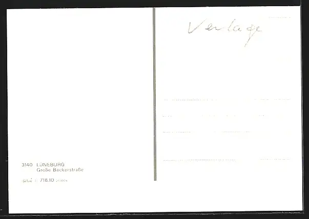 Personenbezogene Daten auf der Rückseite der Karte wurden durch blauen Textmarker unkenntlich gemacht. Die blauen Stellen sind auf die Vorderseite durchgeweicht und wirken sich negativ auf das Postkartenfoto aus
