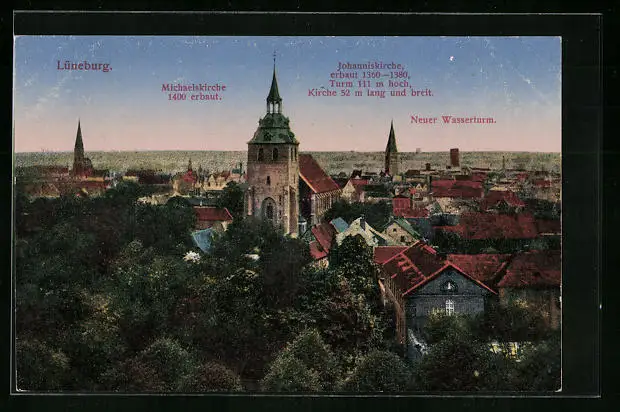AK Lüneburg, Michaeliskirche, Johanniskirche und der neue Wasserturm