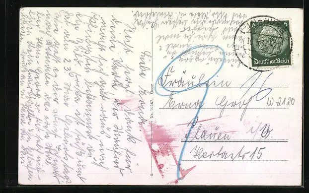 alte Ansichtskarte, gelaufen 1937, guter Zustand