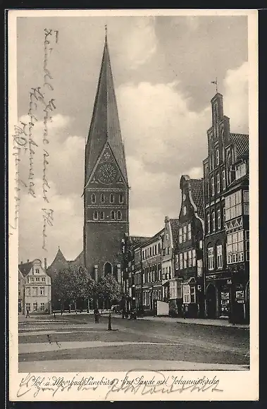 AK Lüneburg, Strassenpartie Am Sande mit Johanniskirche
