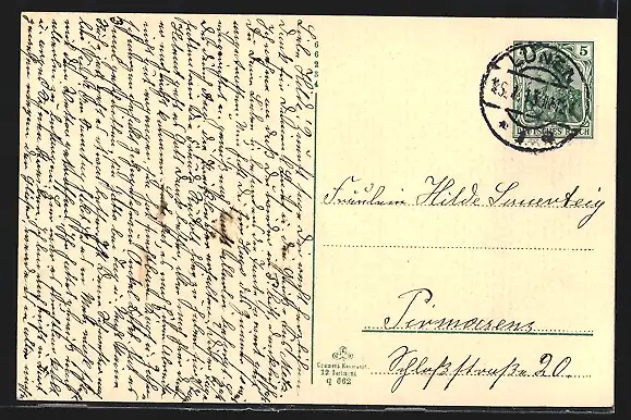 alte Ansichtskarte, gelaufen 1913, Stempelspur, guter Zustand