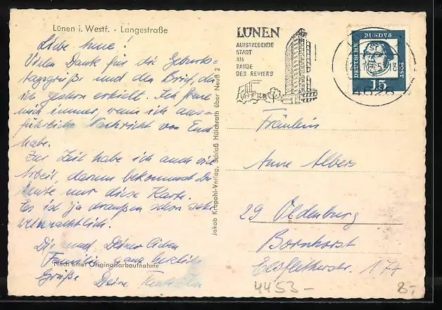 alte Ansichtskarte, gelaufen 1965, guter Zustand