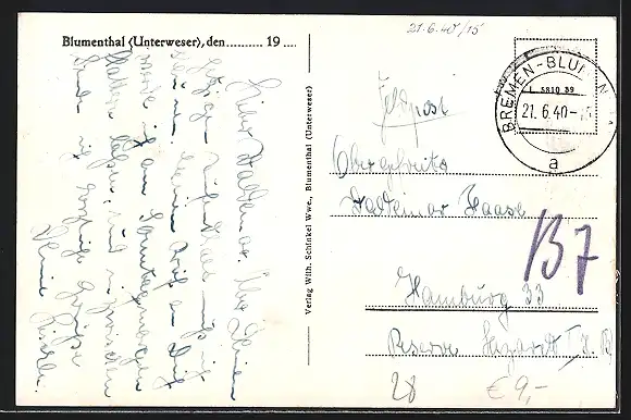 alte Ansichtskarte, gelaufen 1940, guter Zustand