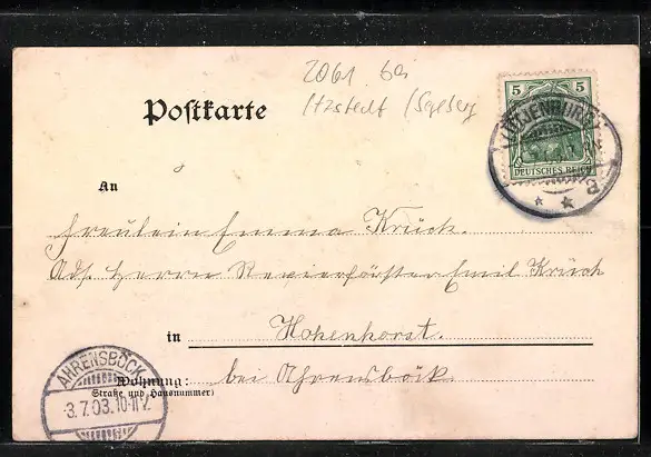 alte Ansichtskarte, gelaufen 1903, Stempelspur, guter Zustand
