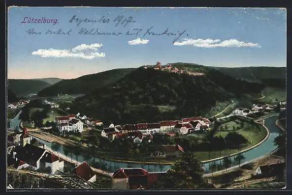 AK Lützelburg, Panoramaansicht der Ortschaft an der Flussschlaufe