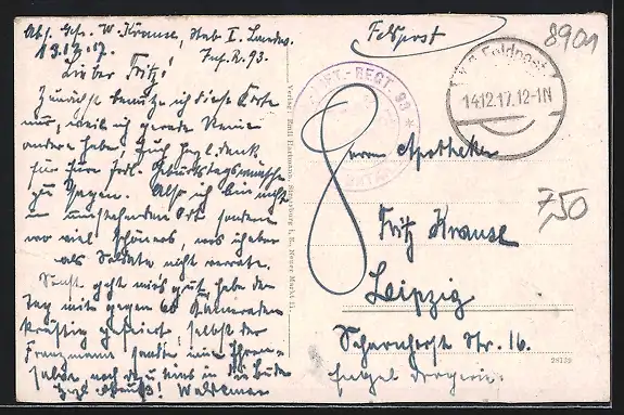 alte Ansichtskarte, gelaufen 1917, Eckknick oben re., guter Zustand