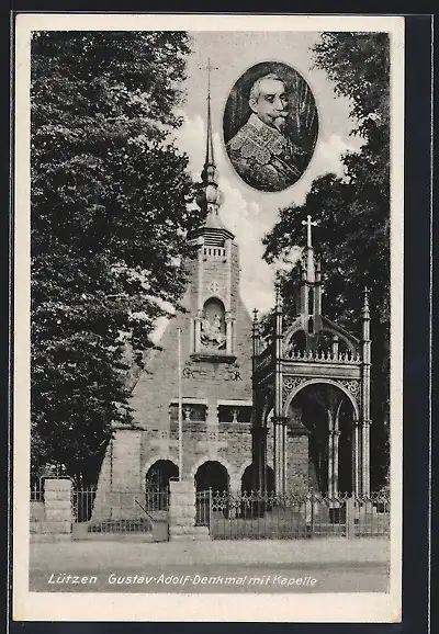 AK Lützen, Gustav-Adolf-Denkmal mit Kapelle, Portrait