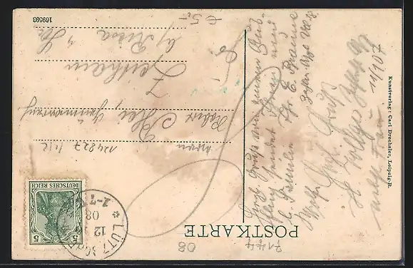alte Ansichtskarte, gelaufen 1908, guter Zustand