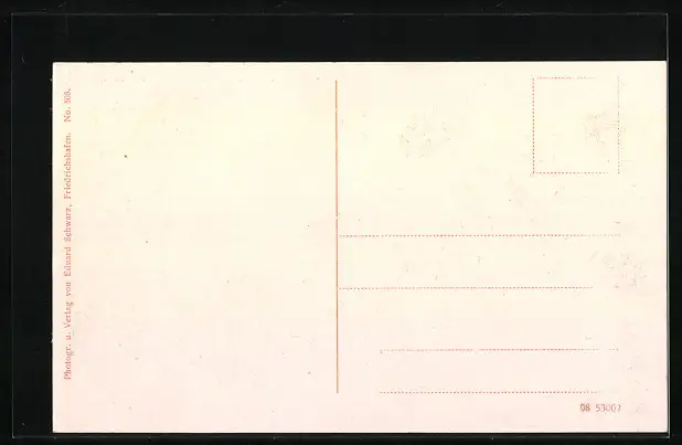 Personenbezogene Daten auf der Rückseite der Karte wurden durch blauen Textmarker unkenntlich gemacht. Die blauen Stellen sind auf die Vorderseite durchgeweicht und wirken sich negativ auf das Postkartenfoto aus