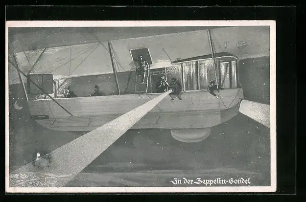AK Luftschiffer leuchten mit einem Scheinwerfer aus der Zeppelin-Gondel
