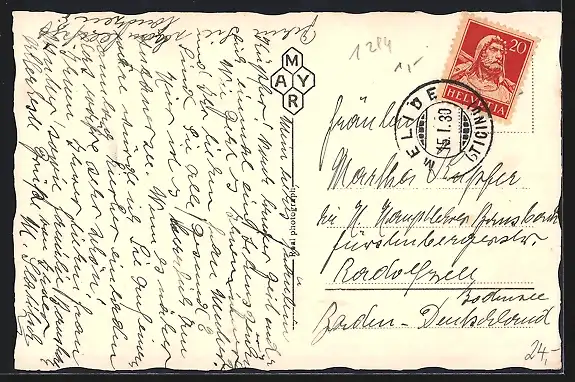 alte Ansichtskarte, gelaufen 1930, guter Zustand