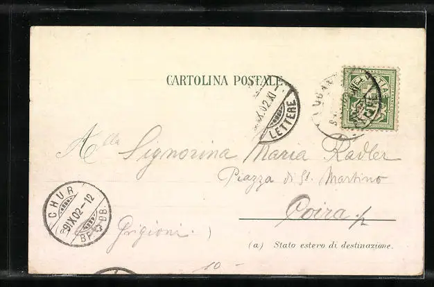gelaufen 1902, Ecken bestoßen, sonst guter Zustand