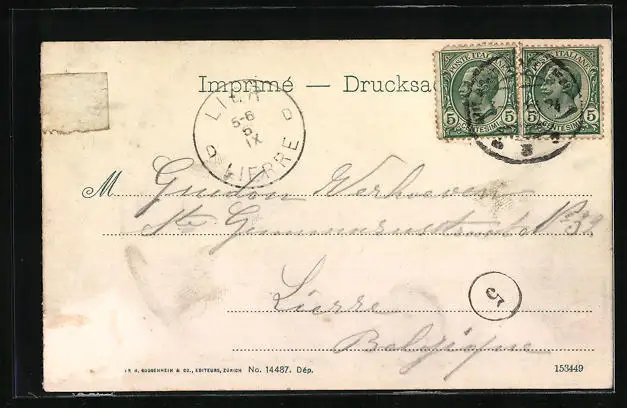 alte Ansichtskarte, gelaufen, rückseitig Klebe- und Papierreste, rückseitig Oberflächenschaden, guter Zustand