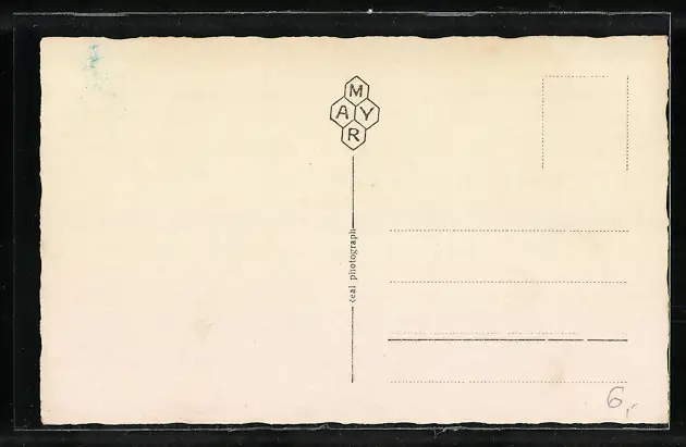 Personenbezogene Daten auf der Rückseite der Karte wurden durch blauen Textmarker unkenntlich gemacht. Die blauen Stellen sind auf die Vorderseite durchgeweicht und wirken sich negativ auf das Postkartenfoto aus