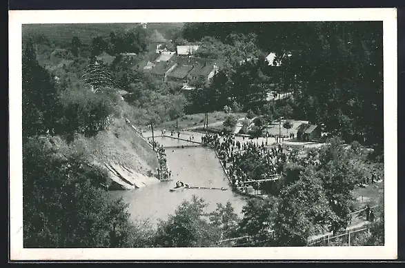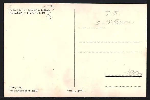 AK Lultsch, Badeanstalt U Libuse, Fliegeraufnahme