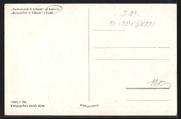 AK Lultsch, Badeanstalt U Libuse vom Flugzeug aus