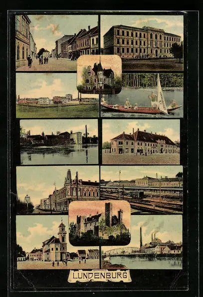 AK Lundenburg, Bahnhof, Kirche, Strassenpartie