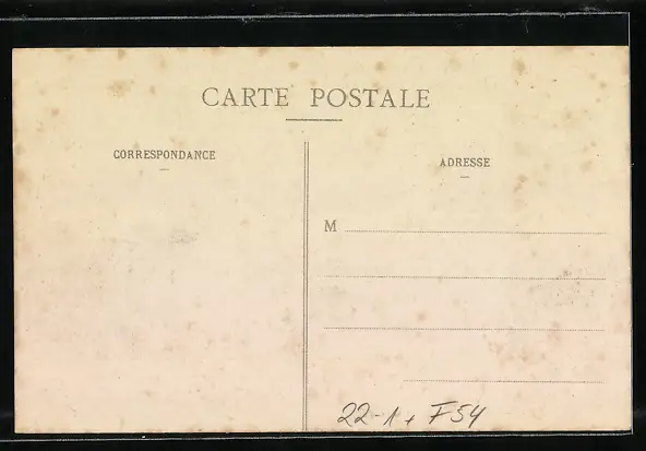 Personenbezogene Daten auf der Rückseite der Karte wurden durch blauen Textmarker unkenntlich gemacht. Die blauen Stellen sind auf die Vorderseite durchgeweicht und wirken sich negativ auf das Postkartenfoto aus