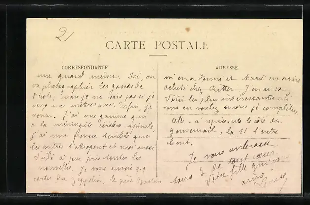 Personenbezogene Daten auf der Rückseite der Karte wurden durch blauen Textmarker unkenntlich gemacht. Die blauen Stellen sind auf die Vorderseite durchgeweicht und wirken sich negativ auf das Postkartenfoto aus
