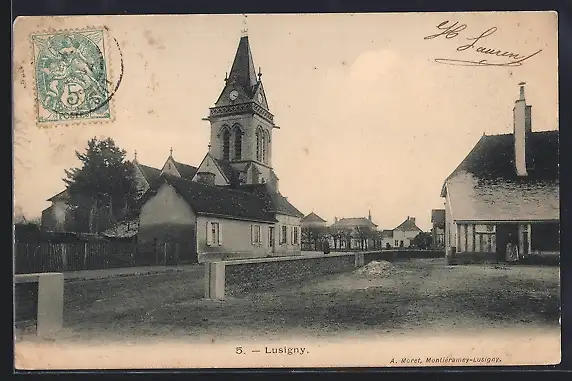 AK Lusigny, Vue de l`église et des bâtiments environnants