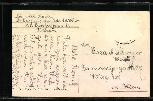 alte Ansichtskarte, gelaufen, Briefmarke entfernt, rückseitig Oberflächenschaden, guter Zustand