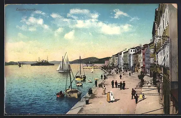 AK Lussinpiccolo, Promenade am Wasser mit Dampfer